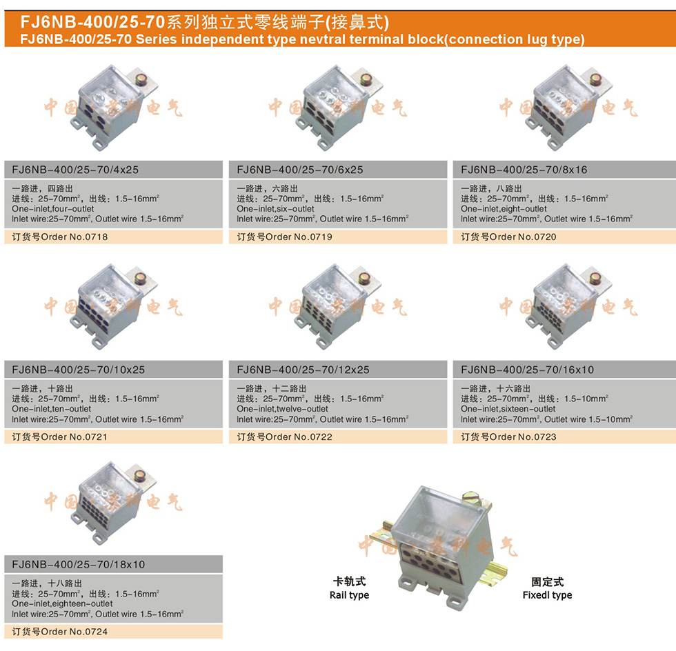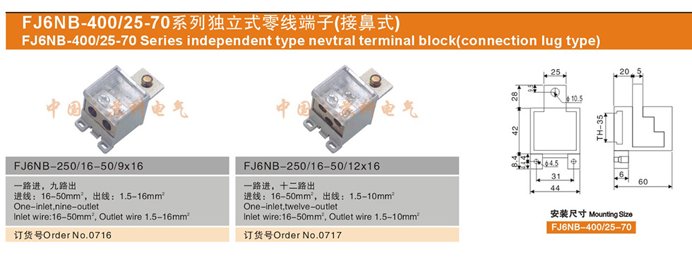 FJ6NB-400/25-70 系列獨(dú)立式零線端子( 接鼻式)