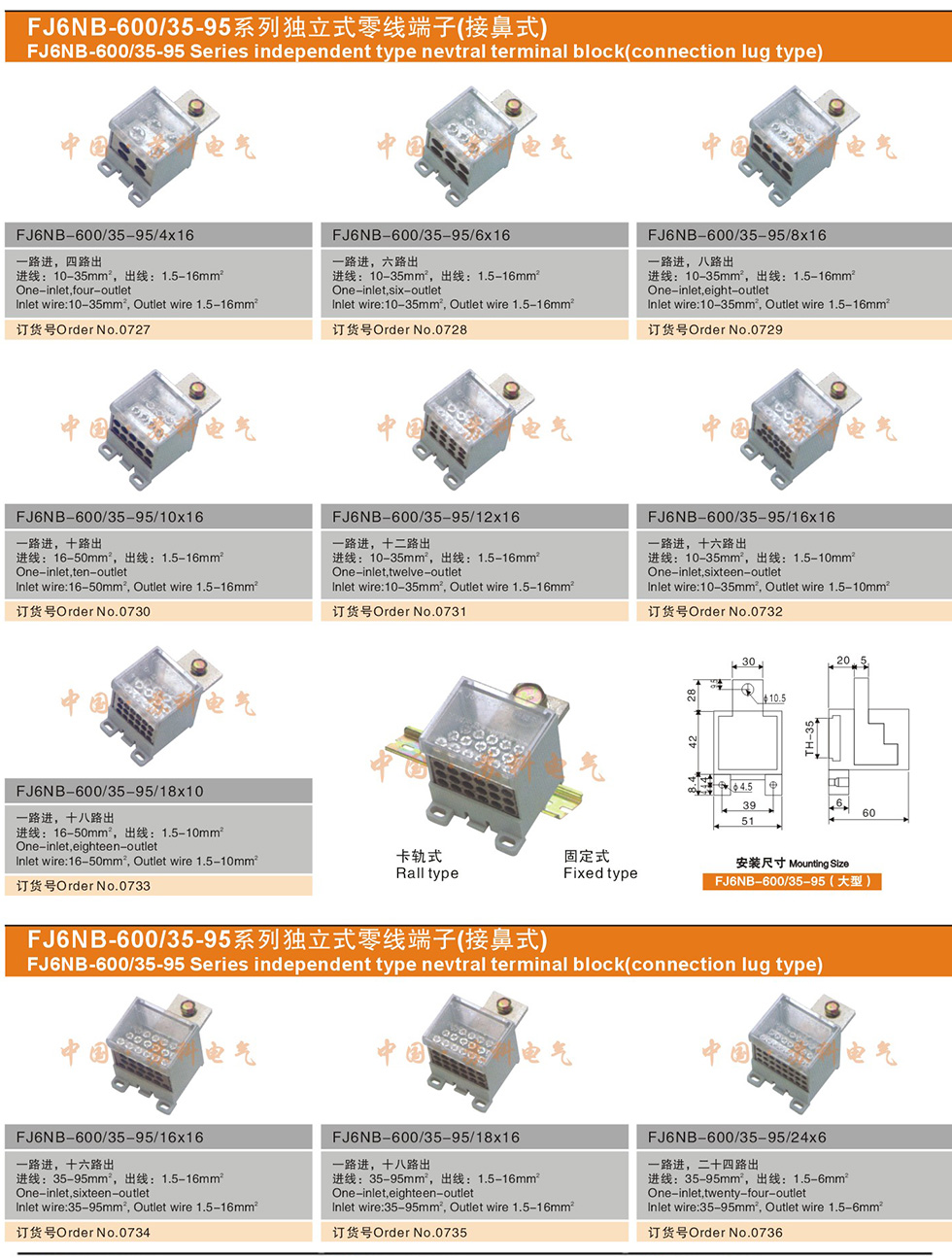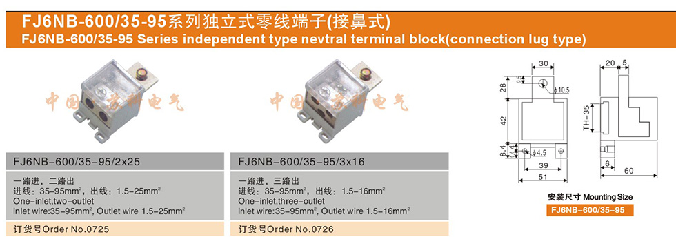 FJ6NB-600/35-95 系列獨(dú)立式零線(xiàn)端子( 接鼻式)